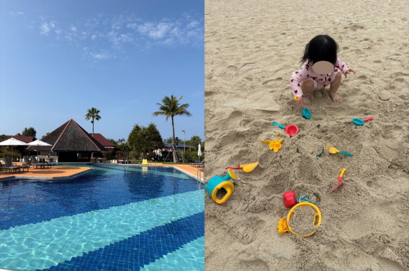복복패밀리가 방문한 3월 말은 아직 바다 수영을 하기엔 추워 야외 수영장을 이용했는데요. 수심이 얕은 유아용 풀이 따로 있어 안전하게 물놀이할 수 있었습니다.