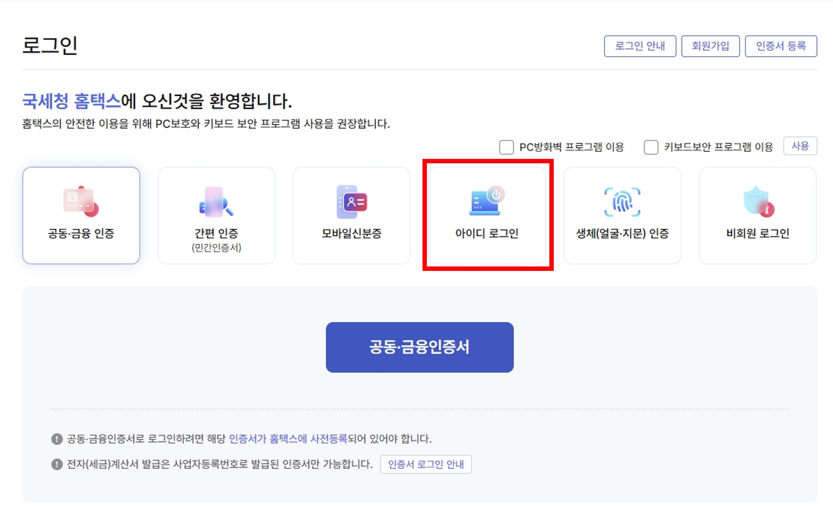 아이디 로그인 선택 - 아이디 로그인 2차 인증 확인